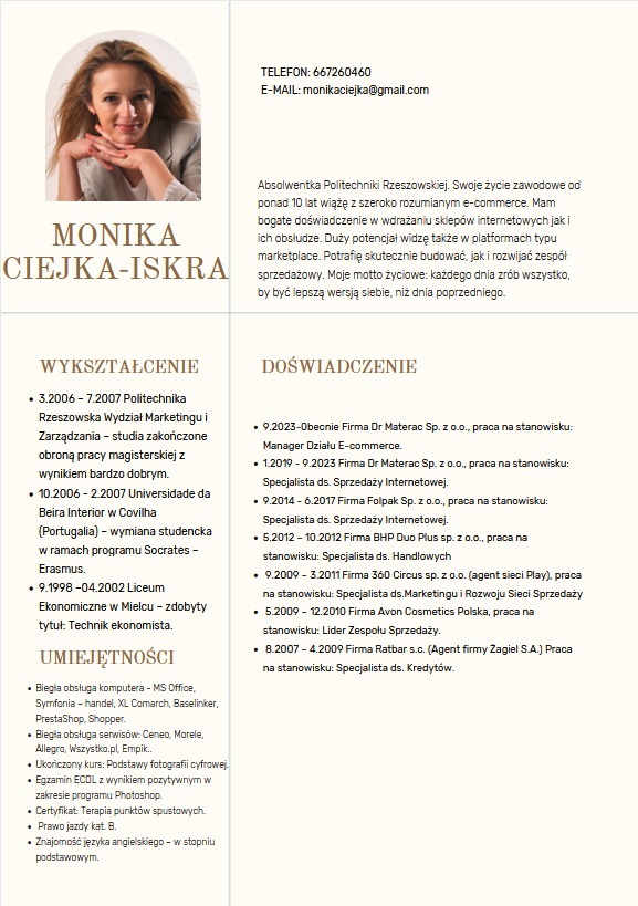 - Brałam udział w tworzeniu sklepu internetowego Dr Materac. Przez kilka lat samodzielnie odpowiadałam za wdrożenia, sprzedaż, kompleksową obsługę klienta i wszystkie kwestie w tym obrębie.